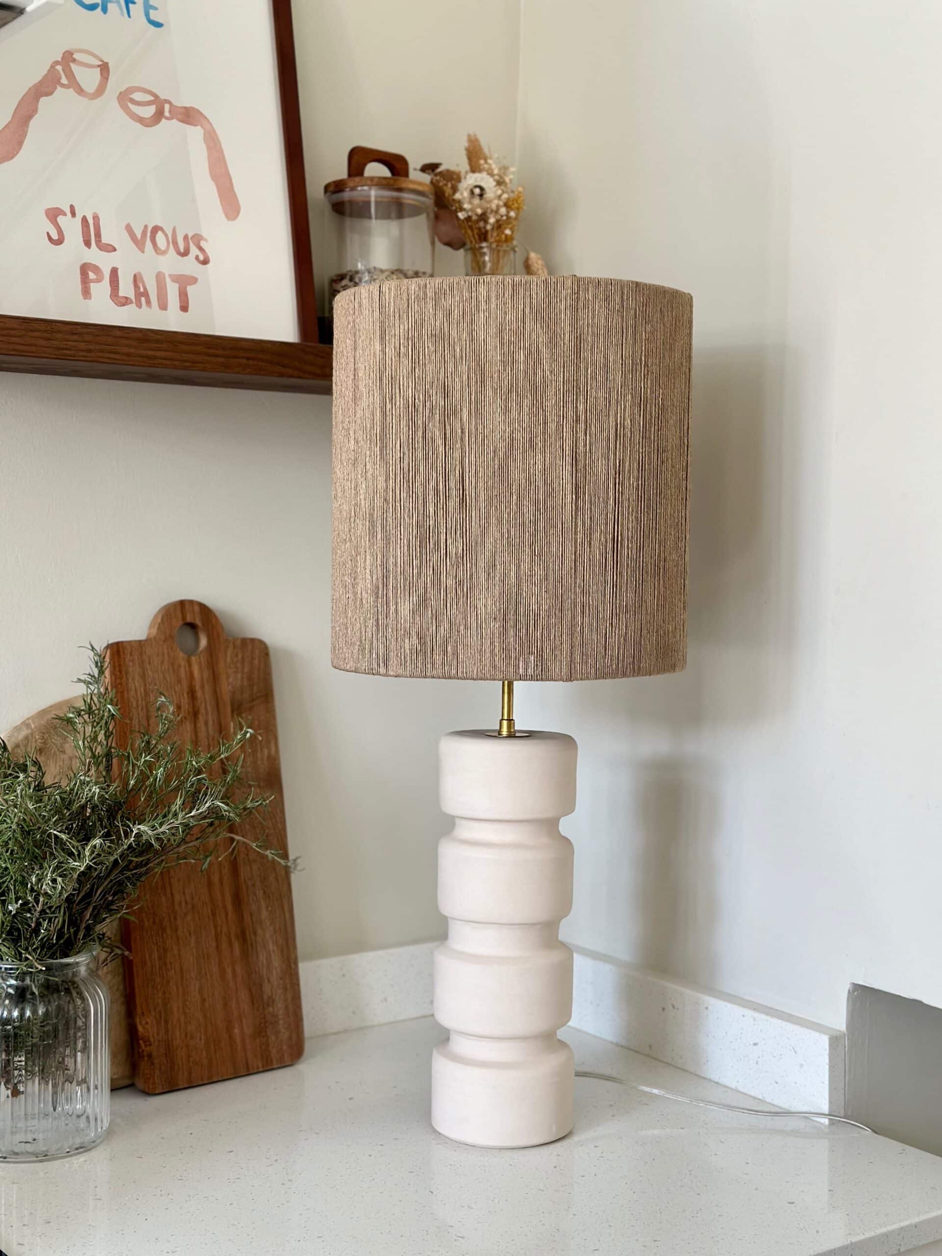 À noter : on peut utiliser une pique (ou petite tige) pour surélever l’abat-jour. C’est une astuce très utile pour réajuster les proportions, donner plus d’élégance à l’ensemble et affiner la silhouette de la lampe.