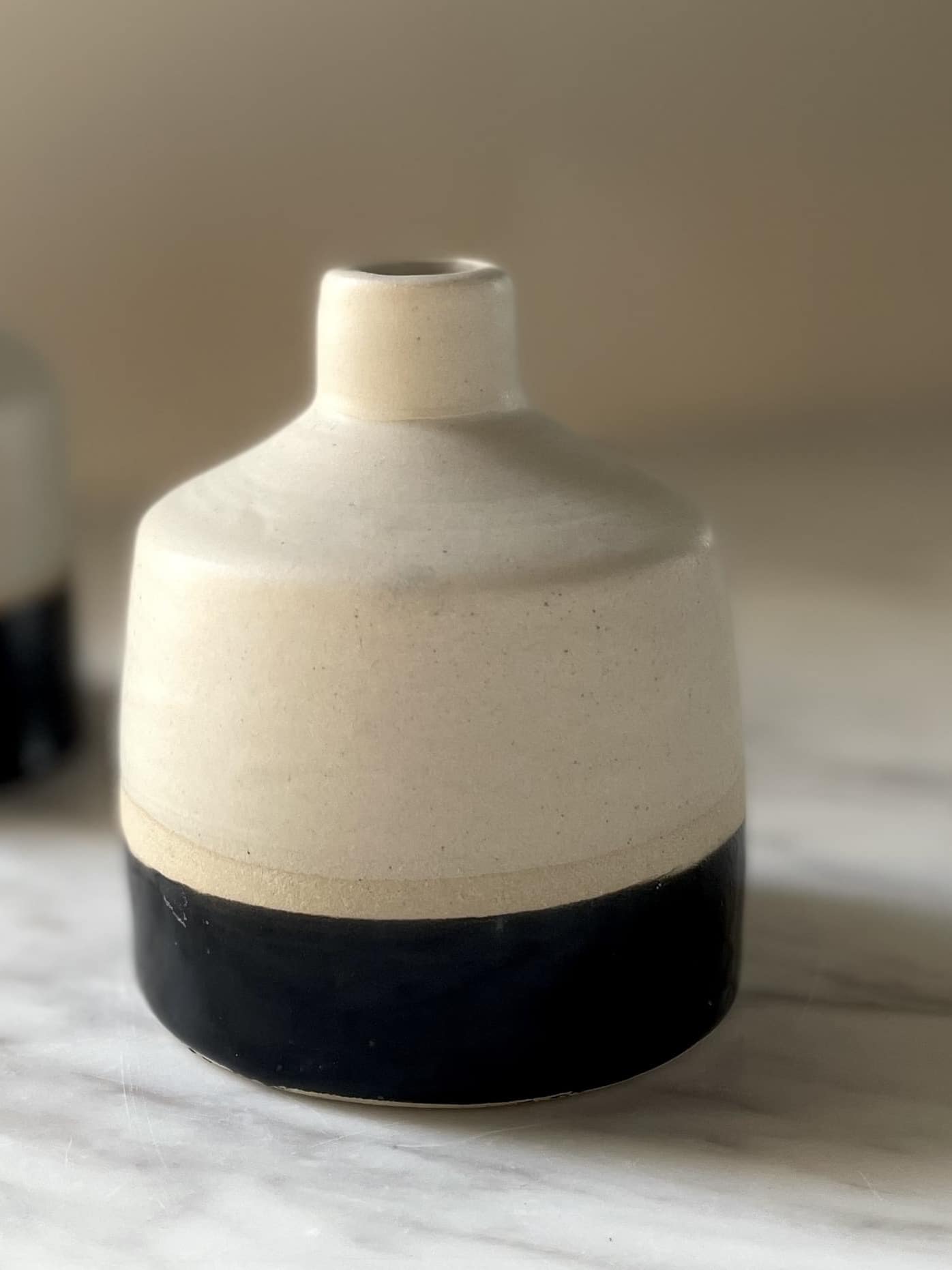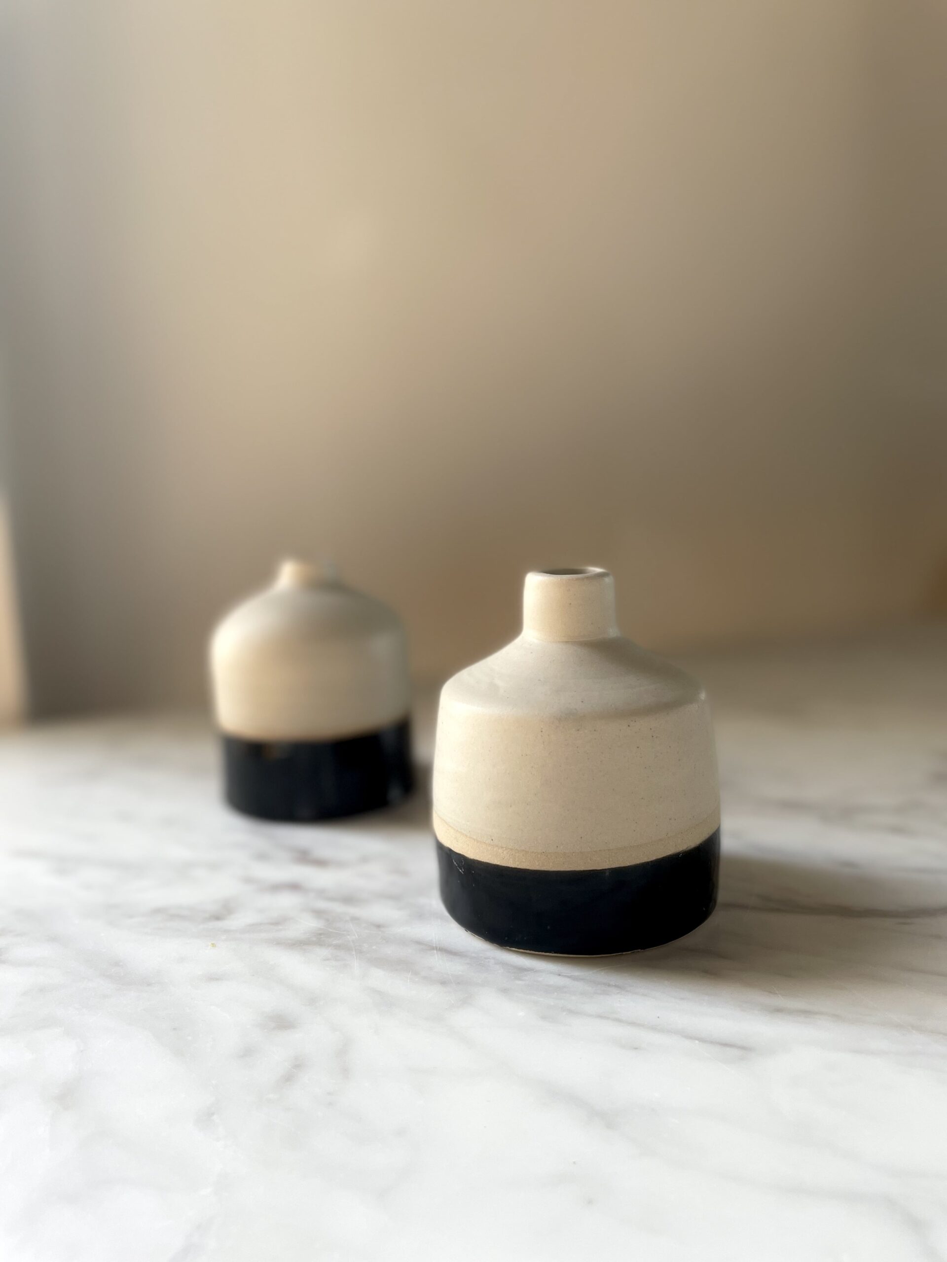 Leur finition en grès noir et blanc leur donne une allure à la fois brute et délicate. Posé sur une étagère, une table ou un rebord de fenêtre, ce petit vase met en valeur une fleur séchée ou fraîche avec poésie.